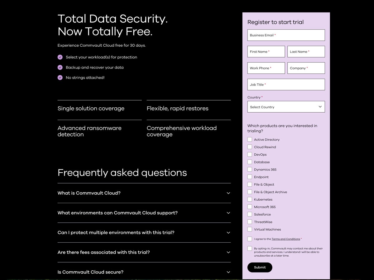 Deep integration with Marketo connects every form, CTA, and demo request to Commvault’s marketing automation, enabling precise tracking and lead nurturing.