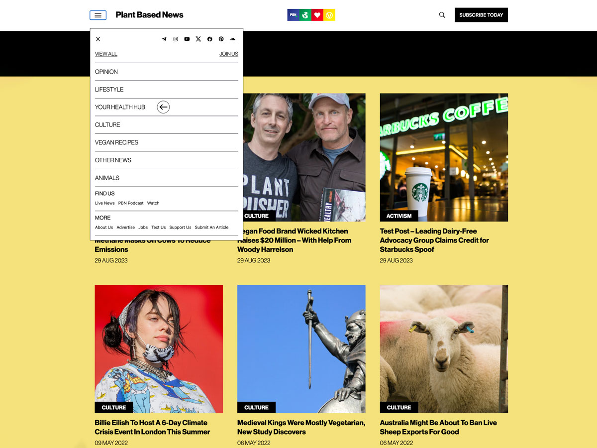 The redesign brought Plant-Based News’s brand to life with bold colors, modern typography, and a visual language that resonates with their mission-driven audience.